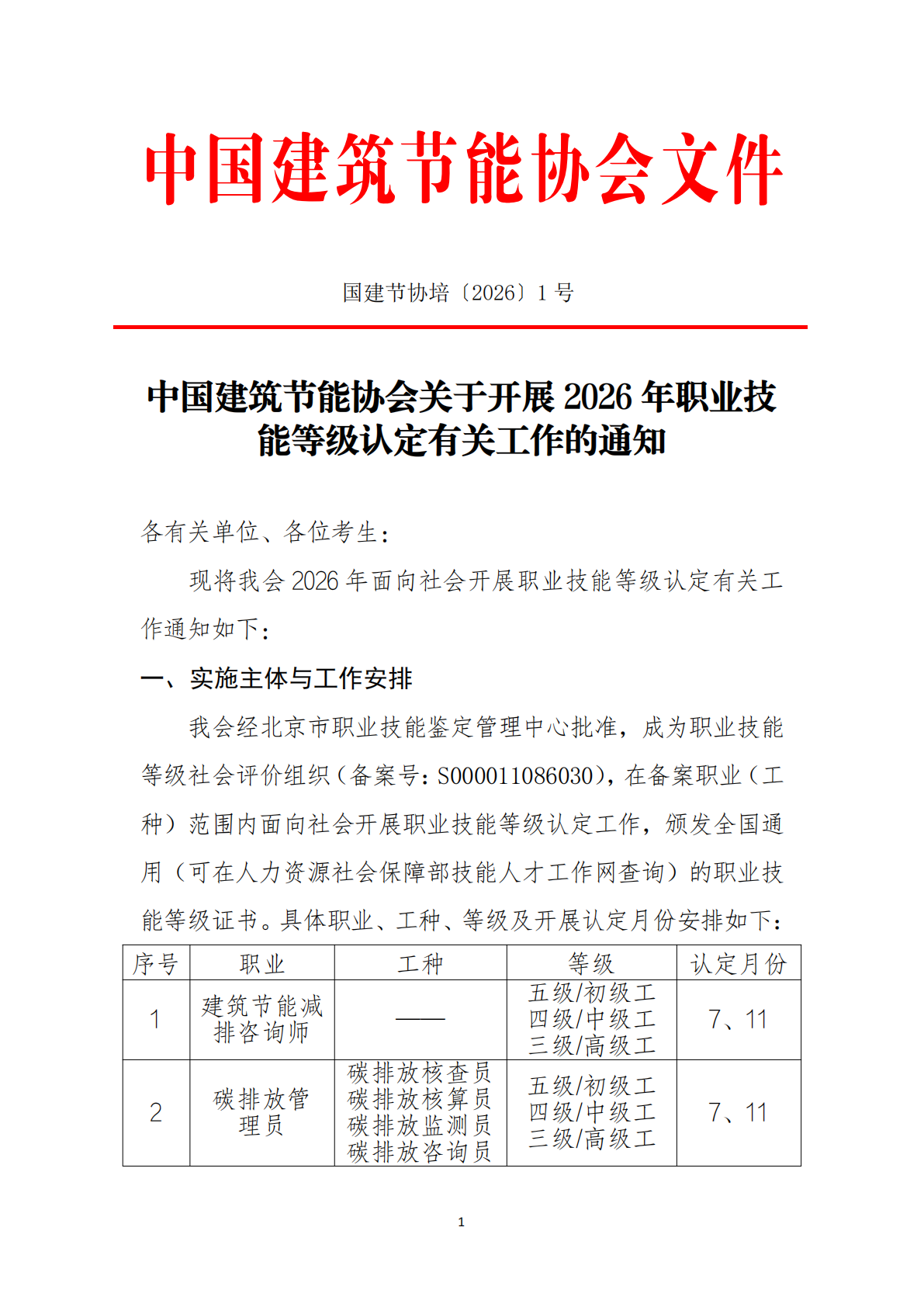 中国建筑节能协会关于开展2026年职业技能等级认定有关工作的通知